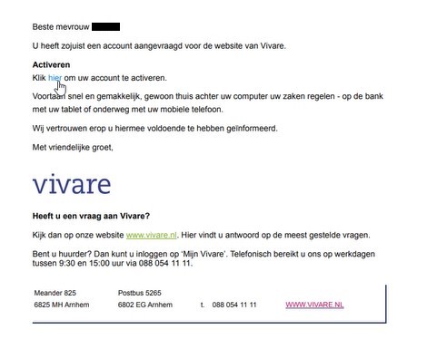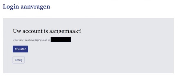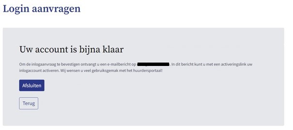 Via het e-mailadres dat u heeft opgegeven, ontvangt u een bericht met daarin een activeringslink. Klik op deze link en ga naar de volgende stap.