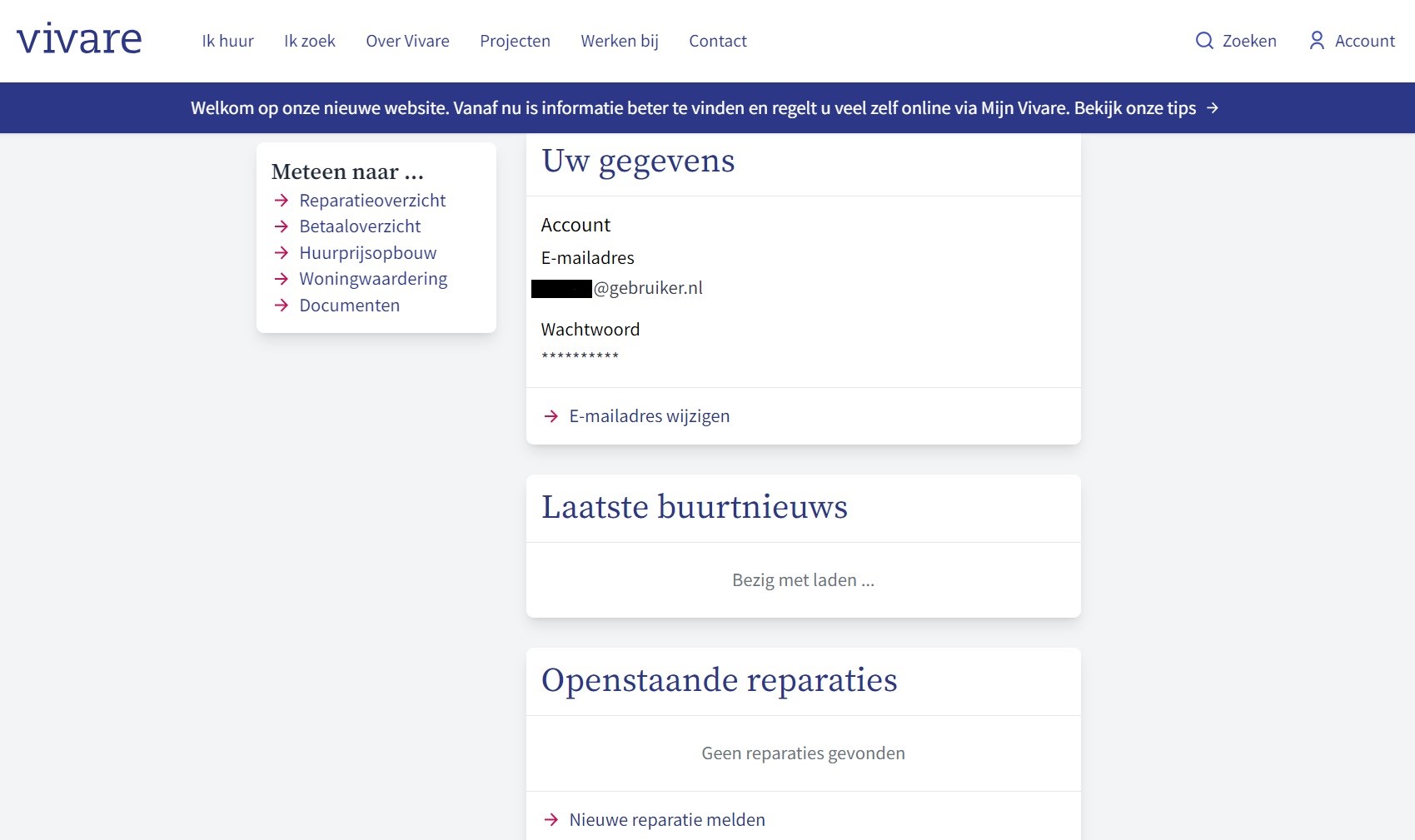 Als u bent ingelogd op Mijn Vivare vindt u onder andere uw eigen gegevens en andere informatie over uw woning of contract.